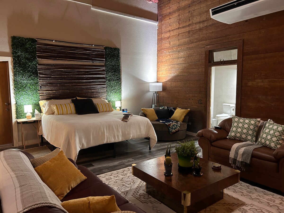 로스웰 한복판에 있는 독특한 로프트에 머무는 것을 꿈꿔본 적이 있나요? 이 놀라운 2층 창고는 편안함과 독특한 분위기가 완벽하게 어우러진 독특한 휴양지로 변신했습니다. 밝고 밝은 분위기부터 모든 마을 관광지에서 몇 걸음 거리에 있는 최고의 위치까지, 잊지 못할 휴가를 보내기에 최고의 장소입니다.