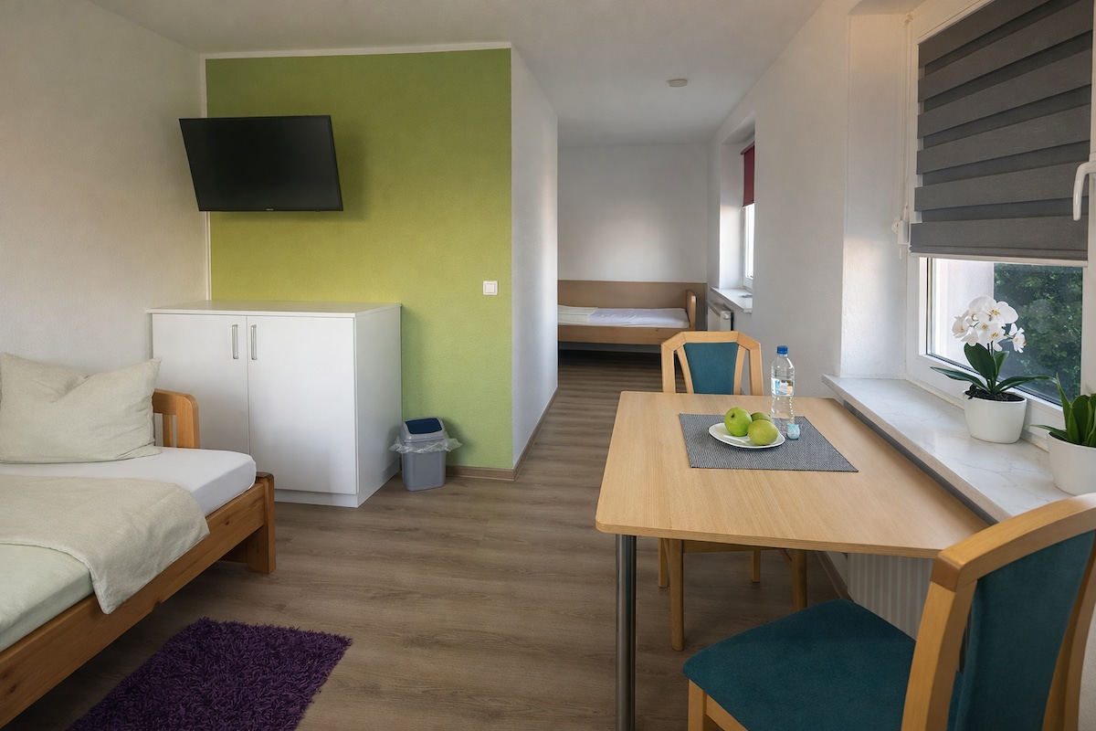 ์ ํฌ์ ์๋ฆ๋ค์ด ์ฃผ๊ฑฐ์ฉ ๊ตํ๋ ๋ผ์ดํ์นํ ๋จ๋ถ์ ์์นํ๊ณ ์์ผ๋ฉฐ, 4๊ฐ์ ํฐ ํธ์๋ก ๋๋ฌ์ธ์ฌ ์์ผ๋ฉฐ, ํฐ ์ ์๊ณผ 10๋ช ์ ์์ฉํ ์ ์๋ ๋๋ํ ๊ณต๊ฐ์ ๊ฐ์ถ๊ณ ์์ต๋๋ค. S-Bahn์ ์ด์ฉํ๋ฉด ๋ผ์ด์ธ ์๋ด๊น์ง 20๋ถ ๊ฑฐ๋ฆฌ์ ์์ต๋๋ค. ์นจ์ค 5๊ฐ, ์์ค 2๊ฐ, ๊ฑฐ์ค ๋ฐ ์์ฌ ๊ณต๊ฐ์ด ๋์ต๋๋ค. ์ถ์ด ๋ ์๋ ๋ฒฝ๋๋ก๋ฅผ ๋ฐ์ฐ๊ณ ๋ถ ์์์ ํด์์ ์ทจํ ์ ์์ต๋๋ค. ์ ํฌ ๋์ ์ ์์๋ ๋ฐ๋นํ, ๊ฐ๊ตฌ ๋ฐ ๋ค์ํ ๋์ด ์์ค์ด ๋ง๋ จ๋์ด ์์ต๋๋ค.
