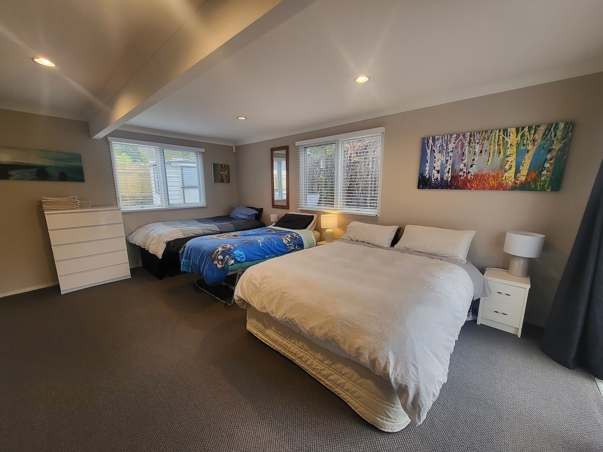 Fresh and modern in Lynmore. Secure bike storage and E-bike charging. Quiet residential area. Off street parking and secure exclusive bike shed. Bike to The Redwoods, walk to cafes and the Good Eastern pub. One of very few homes with twin single beds so best suited to two friends or a parent and child. Self contained but it is attached to the main family home.