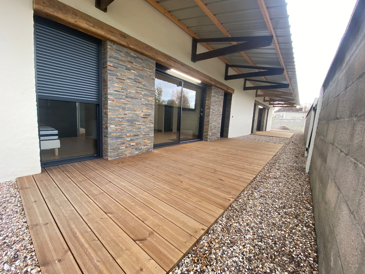 저희는 귀하의 출장 또는 개인 여행을 위해 완전히 새롭게 디자인하고 새로운 시설을 갖춘 별채 1층에 머무르실 것을 제안합니다. 노르망디 시골과 루앙 사이에 이상적으로 위치한 저희 B&B는 고품질의 시설과 주변의 평화로움으로 여러분을 유혹할 것입니다. 즐겁고 편안한 숙박을 위해 모든 것을 고려했습니다. 그늘진 테라스와 전용 주차 공간도 이용하실 수 있습니다. 추신: 규정을 읽어 주시면 감사하겠습니다.