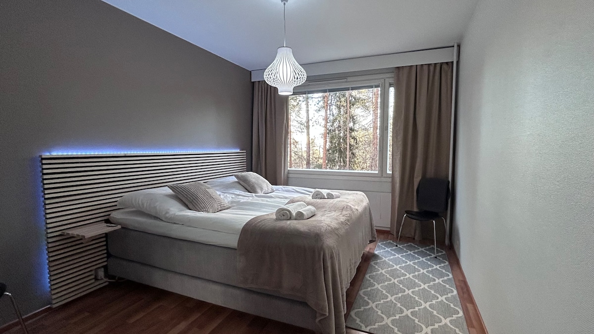시내 중심가 근처에 욕실, 간이 주방, 프렌치 발코니가 있는 아늑한 객실입니다. 폭 140cm 침대. 침대시트, 수건, 조리도구. TV. 전자렌지, 세탁기. 지하실에는 건조실이 있습니다. 도보 거리 내에 슈퍼마켓, 버스 정류장, 기차역이 있습니다. Karhunkaatajantie를 따라 무료 주차장이 있습니다. 주차 디스크로 3시간 동안 마당에 주차하실 수도 있습니다. 예약이 완료되면 셀프 체크인을 위한 안내를 보내드리겠습니다. 라플란드에서 즐거운 시간 보내세요!!