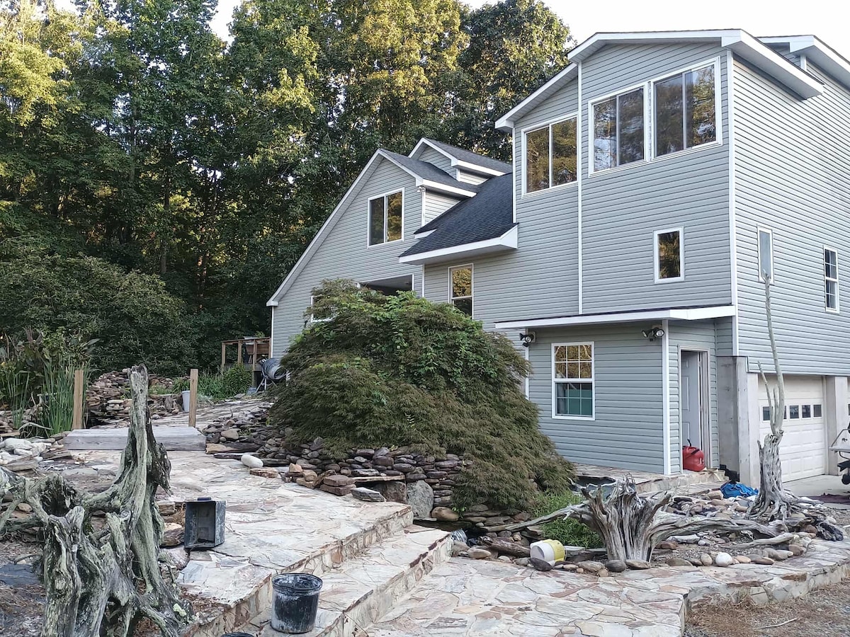 Welcome to High Rock Mountain! If you like fun, relaxation, and gorgeous views, then you will love this home. Precisely situated for excellent 20 mile views, fresh mountain air, Lake access and all you need to have a fun and relaxing stay. Paddle Board down at any of 4 lake access points. Play Cornhole, Washers, Ladder-ball, swing or zip-line at the tree house and sandbox. Lounge on the deck, with a fresh cup of coffee. Sit by the outdoor fire at night, and more!