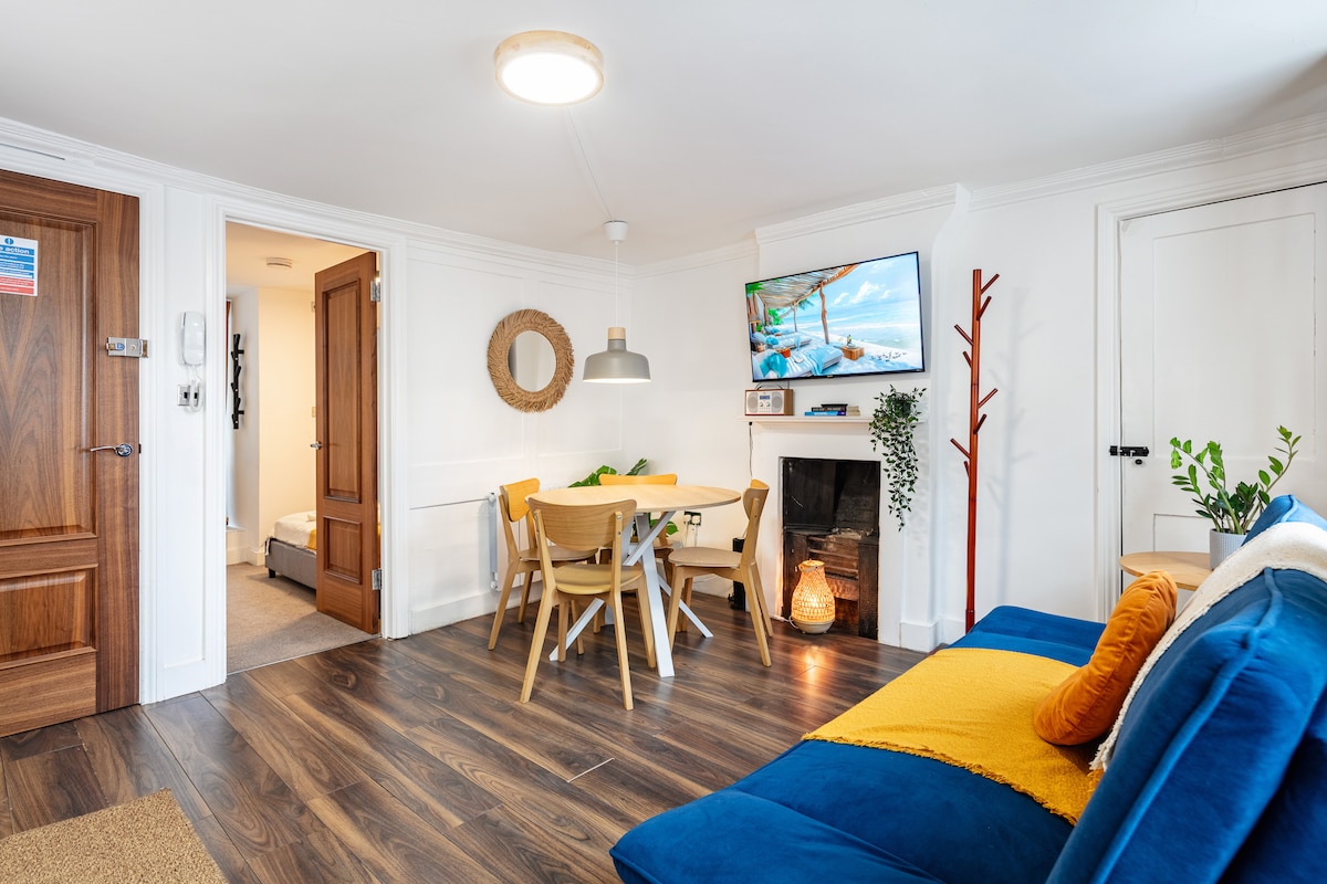 Our one-bedroom flat in Zone 1 is in a prime central London location. The bedroom features a comfortable UK double bed, and the living room includes a sofa bed, making it ideal for families, couples, or groups of friends. Just a few minutes’ walk from Piccadilly Circus, Soho, and Leicester Square, you’ll be in the middle of London’s best shopping, dining, and entertainment. The flat also offers fibre Wi-Fi and a fully equipped kitchen, providing everything you need for a convenient stay.