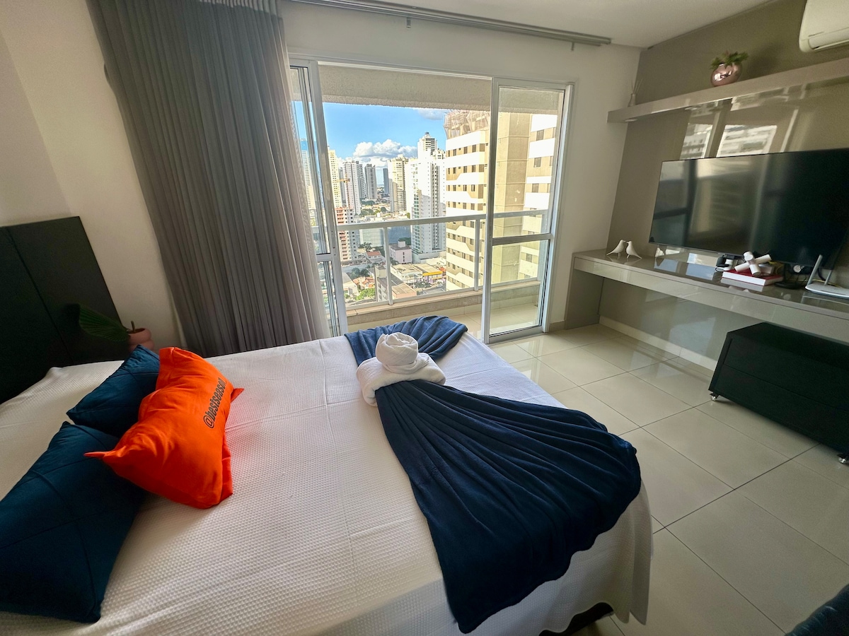 🤩 Condomínio novo ❗️Um Ap único, elegante e sofisticado, feito para você se sentir em casa. Assista seu filme favorito no quarto ou na sala na mais moderna Smart TV giratória com ambiente com ar condicionado, mesa de jantar e espaço de trabalho dedicado. Repouse na melhor cama, delicie-se do chuveiro mais gostoso, aprecie a varanda e uma lindo por do sol com vista para o parque e desfrute do contemporâneo Setor Bueno na melhor região de Goiânia ! Condomínio Tai Residências