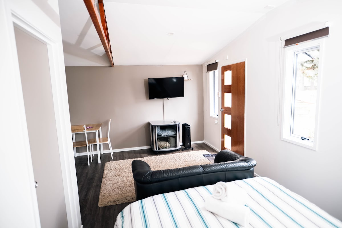 주인의 숙소에서 즐기는 쨍한 햇살, 아늑하고 편안한 야외 수면. 타우포 타운십에서 8분 거리에 있는 아카시아 베이에 위치. 토스터, 주전자, 냉장고, 토스티 메이커, 전자레인지, 에어프라이어가 있는 간이 주방. 소금, 후추, 냅킨, 손수건이 제공됩니다. 샤워실과 변기가 있는 별도의 욕실. 반 농촌 환경을 즐길 수 있는 야외 좌석 공간. 지정된 주차 공간이 있는 노상 주차. 자동차와 트레일러를 주차하기에 충분히 큽니다. 요청 시 자전거를 잠급니다. 수영을 위한 추가 수건