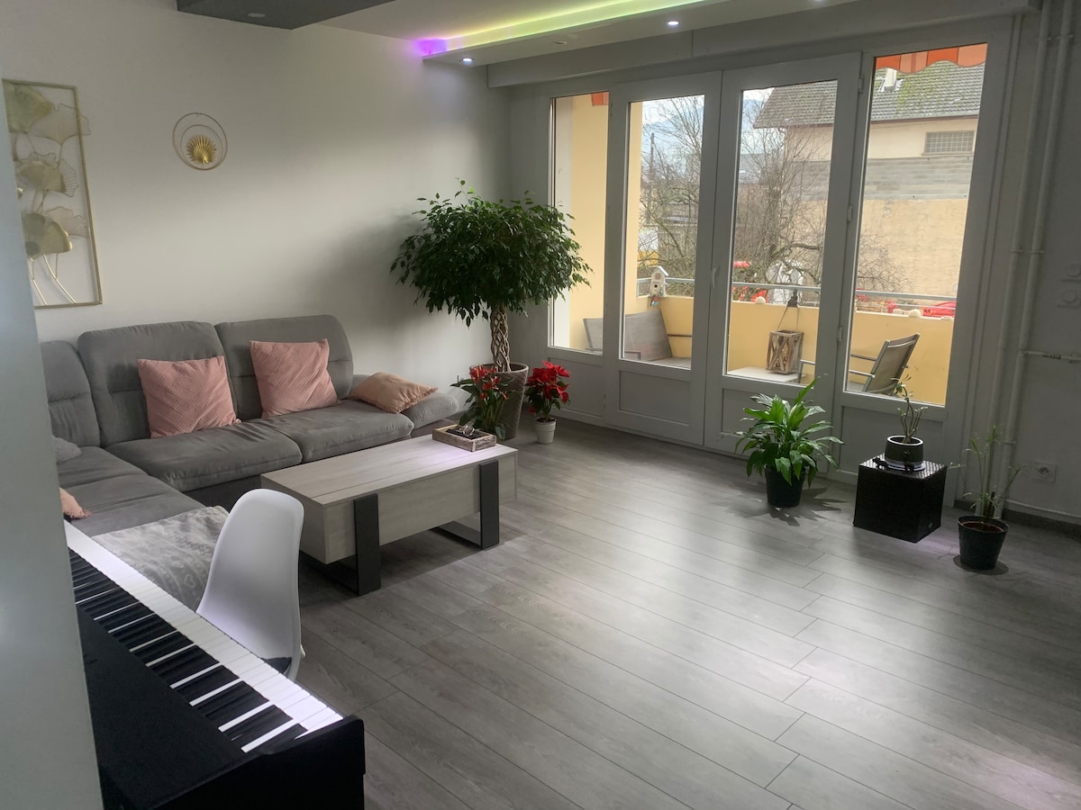 별도의 출입구가 있는 주택의 1층에 위치한 아파트 넓은 거실과 완비된 주방이 있습니다. 작은 베란다 포함 욕실에는 이탈리아식 샤워기가 있습니다. 더블 침대 1개와 90cm 이층 침대 1개가 있는 30m2 크기의 큰 침실 1개 주의 최대 성인 2명 및 이층 침대에 어린이 2명 장애인 이동에 적합한 바닥 루밀리 레저 센터에서 200m, 버스 정류장에서 100m 자전거 도로 아래에 이상적으로 위치 SNCF 기차역에서 4km, TEFAL에서 1km 안시 또는 엑상 레뱅에서 20km