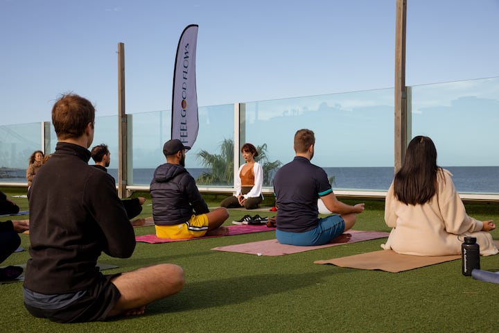 바다의 리듬에 맞춰 루프톱에서 요가 수련하기