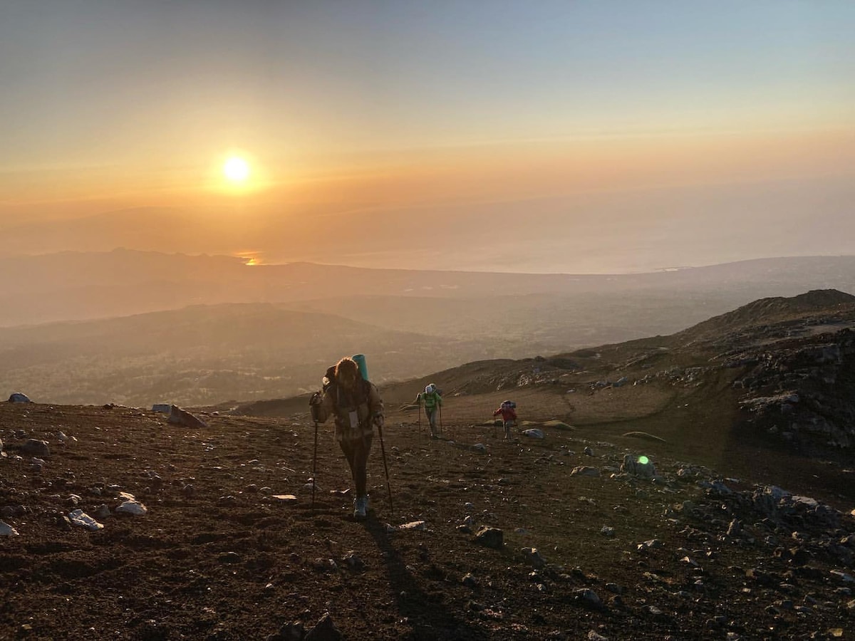 동틀 무렵 에트나산 북쪽 등산로를 따라 하이킹을 즐기며 아름다운 화산 풍경과 일출을 만끽해보세요.