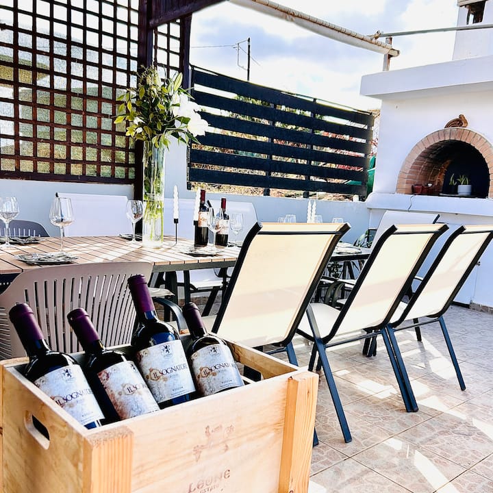 전원 정원에서 맛보는 크레타 와인