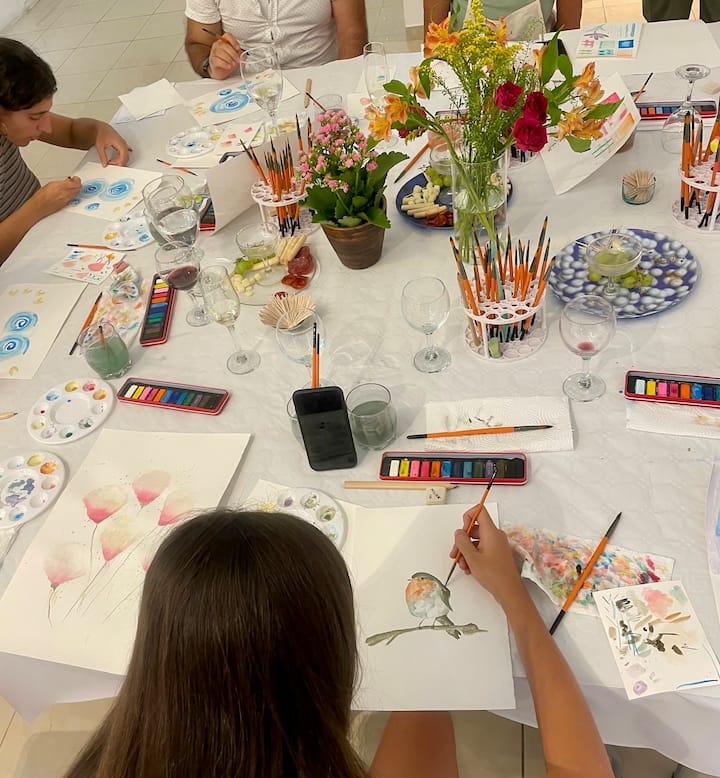 사그라다 파밀리아 근처에서 즐기는 수채화와 와인