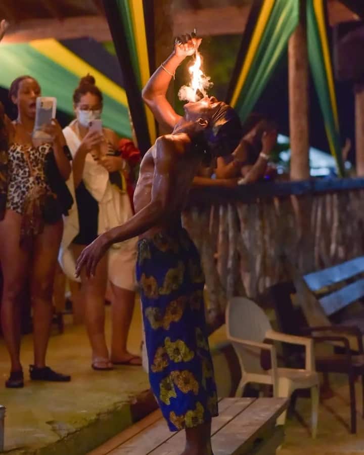 자메이카의 강에서 즐기는 래프팅과 폭포 옆에서 즐기는 만찬