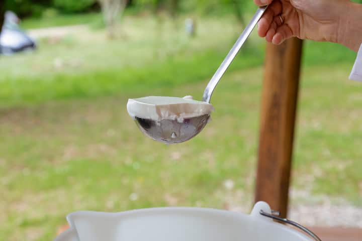 키안티 농장에서 신선한 염소 치즈 만들기