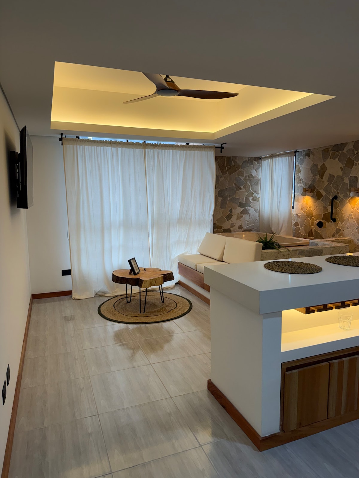 • 현대적이고 편안하며 가구가 완비된 로프트 • 메이오르카 쇼핑몰까지 도보로 갈 수 있는 최고의 위치로, 레스토랑, 은행, 슈퍼마켓, 헬스장, 영화관, 볼링장, 커피숍이 많음 • 아파트 전체에 에어컨 구비 • 멋진 도시 전망 • 재택근무에 적합한 초고속 와이파이와 편안한 책상 • 프로벤자 스트리트와 레라스 공원까지 우버로 15분(미화 4달러), 칼레 데 라 부에나 메사 엔비가도까지 5분(미화 2달러) 거리입니다. • 프런트데스크 24시간 보안