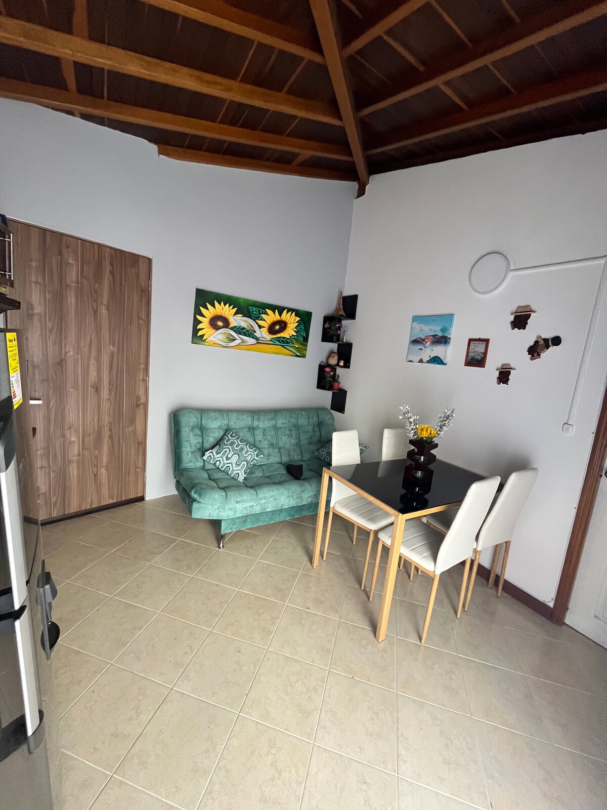 넓은 공간, 발코니, 거실, 주방, 더블 침대가 있는 침실 2개, 좋은 환기와 조명, 넓은 욕실, 모두 아늑한 분위기로 집처럼 편안하게 느끼실 수 있습니다. 위치는 전략적입니다. 엔비가도 지하철역과 비바 쇼핑 센터에서 도보로 8분, 포블라도에서 대중교통으로 10분, 메데인 시내에서 지하철로 15분 거리에 있습니다.