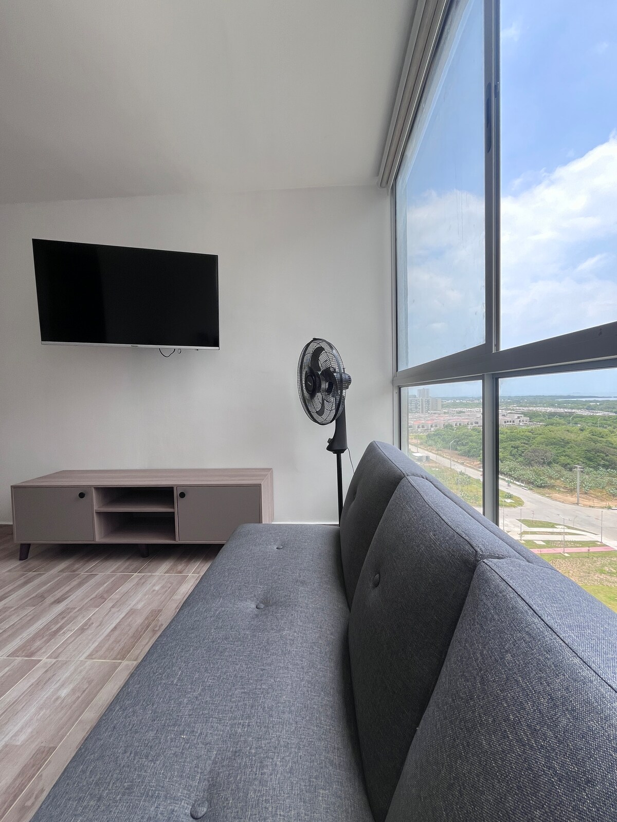 Spectacular new studio apartment, fully equipped and furnished with all the comforts for business and / or tourism. It has an excellent location, close and with easy access to: shopping centers (Viva, Buenavista), restaurants, corporate area, banks, supermarkets and more. The tower has a hotel-type lobby, free parking, 24-hour security, elevators. Gym, jacuzzi, playground and co-working soon.
