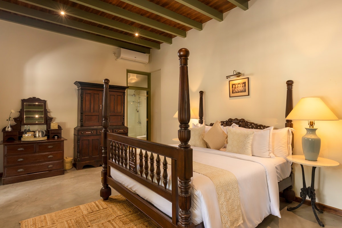 Escape to Aqua Pavilion at Kandy Victoria Eco Resort, one of the best boutique hotels in Kandy, Sri Lanka. This luxurious room features a private balcony and a chill tub, offering stunning views of Victoria Reservoir and lush mountains. Enjoy the perfect blend of traditional and modern architecture, complimentary breakfast, and serene surroundings in a calm residential area. Guided hikes, free bicycles, and personalized service complete your unforgettable stay.