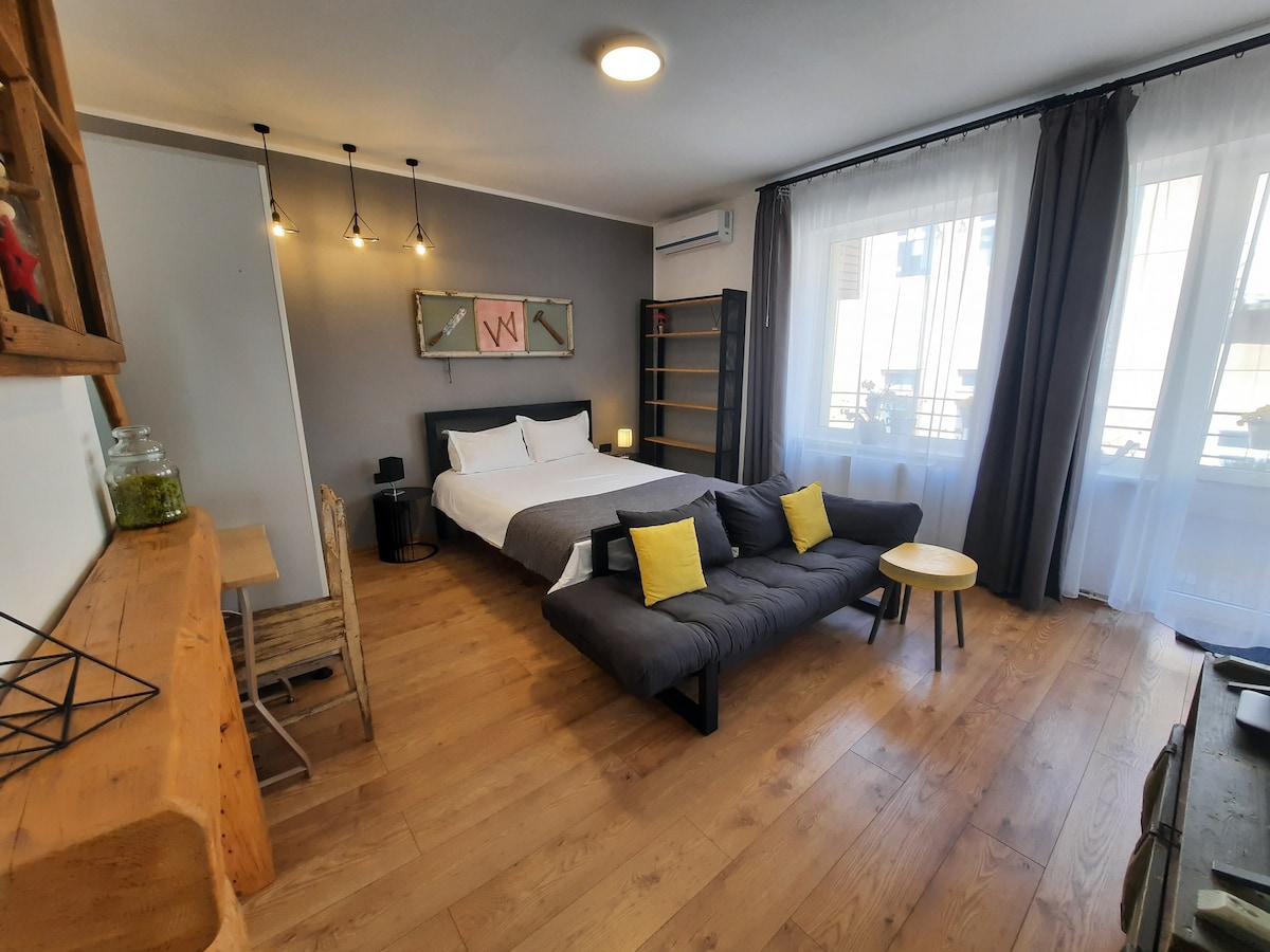 Comfortable, warm, well-furnished studio, walking distance from the Old City and the new city center. The perfect base for your Transylvanian "paseos", whether you're looking for a summer break surrounded by nature, hiking in the mountains surrounding the city, or a skiing holiday, or just exploring the city and the castles around, this is the place for you.