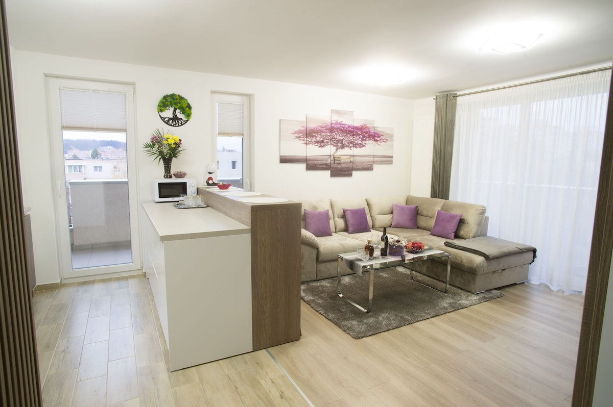 코레시 몰 바로 옆에 위치한 우아하고 조용한 아파트. 바쁜 하루를 보낸 후 휴식을 취하기에 완벽하며 아늑한 침실, 넷플릭스가 있는 현대적인 거실, 시설이 완비된 주방, 밝은 발코니가 특징입니다. 브라쇼브에서 짧은 도시 휴가와 장기 숙박 모두에 이상적이며, 상점, 카페, 엔터테인먼트가 몇 걸음 거리에 있습니다!