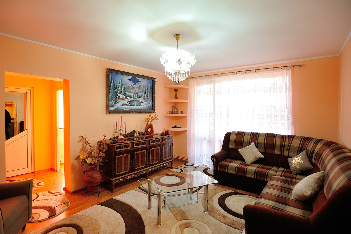 출장이나 휴가를 위한 완벽한 숙소입니다. 객실은 아름답게 가구가 배치되어 있으며 매우 편안합니다. 이 아파트는 조용한 지역에 위치하고 있으며 기차역과 버스 정류장까지 도보 5분, 드라큘라 성까지 자동차로 30분, 포아나 브라쇼브까지 20분이 소요됩니다. 예약 가능 여부에 따라 운송 서비스도 제공됩니다. 언제나 최고의 서비스를 제공해 드리겠습니다. 여러분을 맞이하겠습니다!