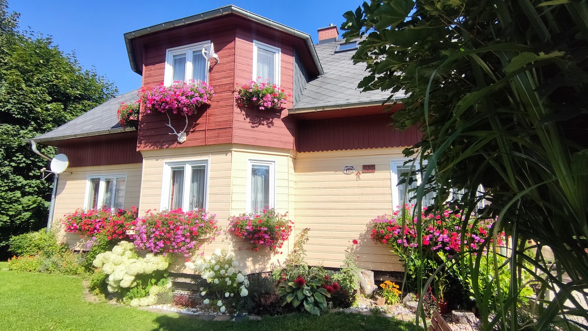 Our Cottage is a newly renovated building from the turn of the 19th and 20th centuries, located 1.5 km from the center of town Krasna Lipa in the part of Kamenná Horka. From 490 above the sea level you can explore the National Park of Bohemian - Saxon Switzerland and watch also the Lusatian Mountains. 3000m2 garden offers relaxing in the grass, in the rocking nets between the trees or refreshing in the bathing pond.