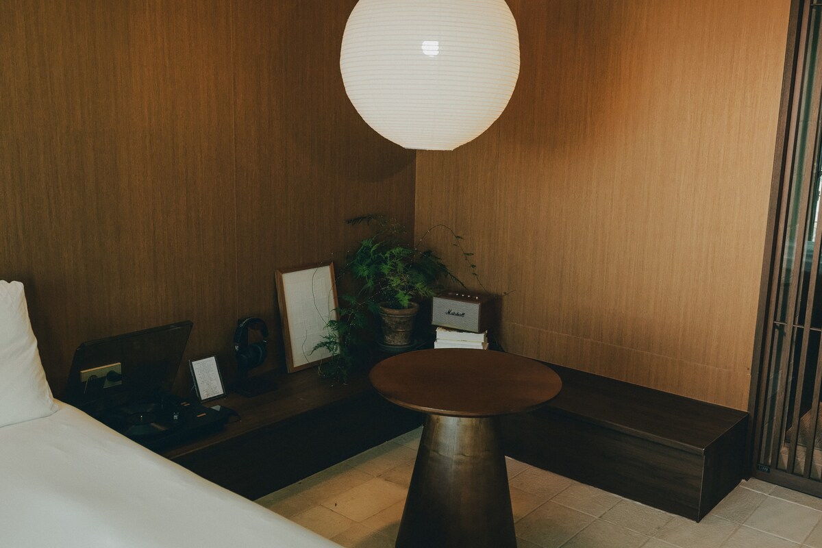 이 객실을 준비하면서 가장 많이 떠올렸던 건 '깊은 쉼'이었어요. 일상을 잠시 벗어난 시간은 특별한 자극보다는, 단순하고 편안하게 흘러가길 바랐습니다. 깔끔한 직선 구조, 차분한 색감, 그리고 나무가 주는 자연스러운 따뜻함으로 공간을 다듬었습니다. 화려하지 않아도 정성스레 고른 마감재를 통해 안정감과 여유를 느끼실 수 있을 거예요. 좌식 테이블은 앉아서 편히 글을 쓰거나, 가만히 쉬어갈 수 있게 배치했습니다. 잔잔한 앰비언트 음악과 짧은 에세이 몇 권을 준비했어요. 빠르게 소비되는 콘텐츠가 아닌 천천히 즐길 수 있는 것들이죠. 이 방에선 어떤 특별한 일을 하지 않아도 괜찮아요. 그저 편안히 머물고, 충분히 쉬었다 가세요.