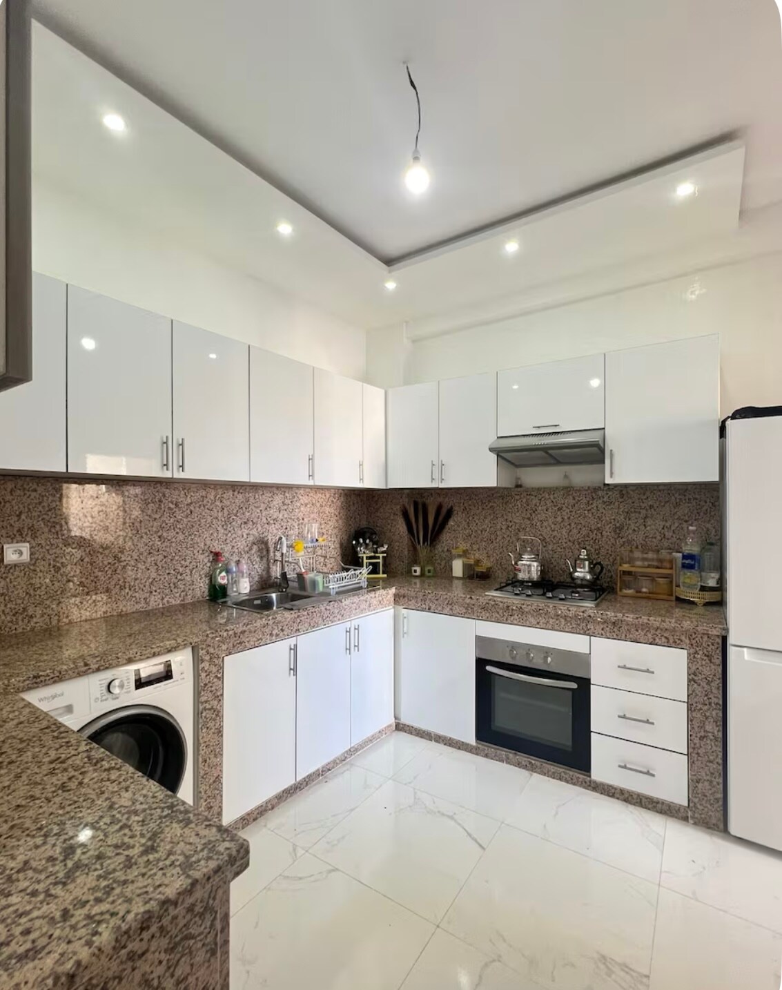 아름답고 넓고 밝은 아파트, 새 건물 100m, 3층에 엘리베이터 있음. 도심에 위치한 아파트. 해변과 시디 부지드에서 5분 거리. 마르잔 시장에서 도보로 2분 거리. 길 건너편에 슈퍼 카페와 레스토랑이 있습니다. 필요한 모든 것에 가까운 숙소. 매우 조용하고 매우 깨끗한 동네. 현지인들은 매우 존경스러우며 기준에 부합합니다. 이 아파트에는 연중무휴로 운영되는 감시 카메라가 설치된 전용 지하 주차장이 있습니다. 경비원이 24시간 내내 대기합니다.
