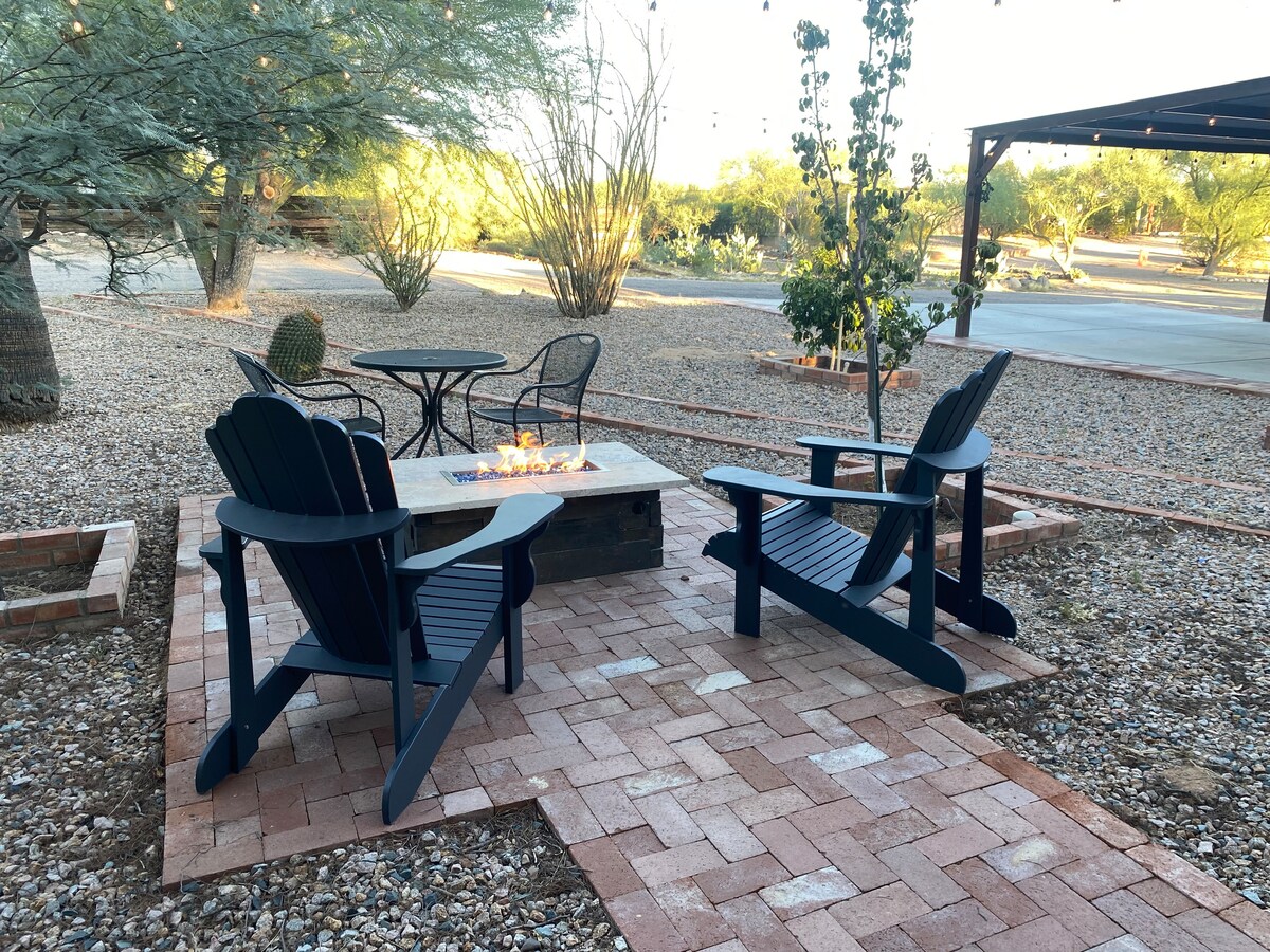 카탈리나 풋힐스에 위치한 프라이빗 오아시스는 전용 출입구가 있는 넓은 1BR 스위트로 3명이 숙박할 수 있습니다. 전용 데크의 온수 욕조에서 별이 빛나는 밤하늘 아래 도시의 야경을 감상할 수 있습니다! 타오르는 불 앞에서 따뜻하게 몸을 녹이고 마시멜로를 구워보세요! 완비된 주방 및 세탁 시설. 온수 수영장, 당구, 러닝머신, 바비큐 시설이 있는 공용 공간을 이용하실 수 있습니다. 사진은 여기에 공간이 있는 것보다 1000단어 이상을 말해줍니다! 모두 보고 궁금한 점을 물어보세요! 곧 방문하시길 바랍니다!