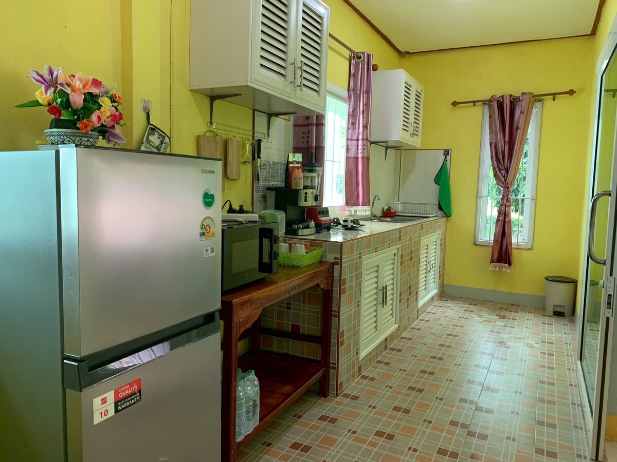 BE-TA Chanthaburi Farm Airbnb에 오신 것을 환영합니다! 🌿 180평방미터의 넓은 숙소는 아늑한 침실 4개 (연결 객실 2개), 현대적인 욕실 2개를 갖추고 있으며, 고요한 두리안과 망고스틴 농장 한가운데에 자리잡고 있습니다. 최대 8명의 여행객이 머물기에 완벽한 자연스럽지만 편안한 숙박을 경험하세요.