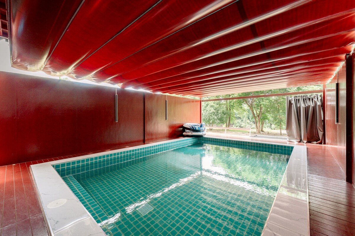 P'bear Pool Villa is located in Sai Yok District, a private house for 10 people, there is a swimming pool inside the house, can cook and grill , near the death railway, prasat mueang sing, Sai yok elephant Camp wihin a disance of 10-15 kilometers.