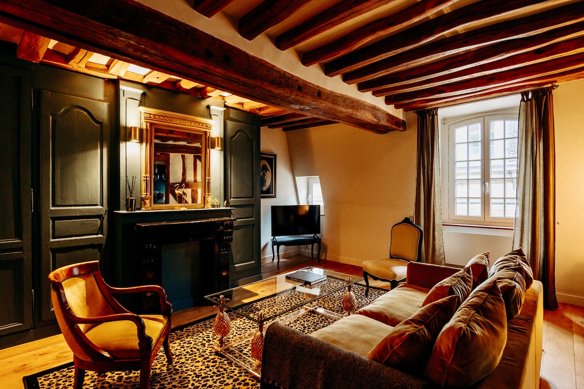 18세기 저택의 고급스러운 아파트에 여행 가방을 내려 놓으세요. 빈티지 스타일의 아늑하고 세련된 인테리어 덕분에 즉시 집처럼 편안함을 느낄 수 있습니다. 시설이 완비되어 있으며 2명의 여행객을 수용할 수 있습니다. 기념비적인 계단을 올라 2층에 도착하면 여러 번의 여행으로 피곤해진 다리를 쉬어 드립니다. 장엄한 생 투앙 수도원의 전망을 감상할 수 있는 이곳에서 32㎡ 규모의 아파트의 모든 편의시설을 갖춘 둥지의 평온함을 느낄 수 있습니다. 숙소는 전적으로 게스트를 위한 것입니다. 크리스틴 또는 도미니크가 따뜻하고 편안한 분위기로 여러분을 맞이할 것입니다. 때로는 긴 여행 시간이 지나고 나면 편안함과 평온함을 느낄 수 있습니다. 원하신다면 방문할 만한 장소뿐만 아니라 다양한 명소를 알려드릴 수 있습니다. 그러면 도시를 탐험할 준비가 될 것입니다. 중세 골목과 균형의 법칙에 저항하는 집들이 있는 루앙 구시가지 중심부에 위치한 이 아파트에서는 근처에 있는 맛있는 레스토랑, 비스트로, 매력적인 상점을 즐길 수 있습니다. 루앙 오른쪽 강변 역과 아파트 사이의 이동은 도보로 약 10분 거리입니다. 차로 오시는 경우 아파트에서 몇 미터 떨어진 시청 주차장에 차를 주차하실 수 있습니다. 보행자 통로(24시간 동안 15유로)로 나오면 됩니다. 약 8/9분 거리에 법원(대성당 보행자 출구)이라는 이름의 주차장도 있으며 요금은 같습니다. 이 주차장은 훨씬 깨끗하고 크며 공간이 넓습니다. 그렇지 않으면 시간 제한 및 시간 표시가 있는 도로변 주차가 가능합니다. 거리 주차는 19시부터 9시까지, 일요일과 공휴일에는 무료입니다. 건물 아래에서 자전거를 대여할 수 있습니다. 마지막으로, 버스로 대중교통을 이용하실 수 있는 곳은 몇 분 거리에 있습니다. 사전에 알려주시면 추가 요금 없이 24시간 체크인이 가능합니다.