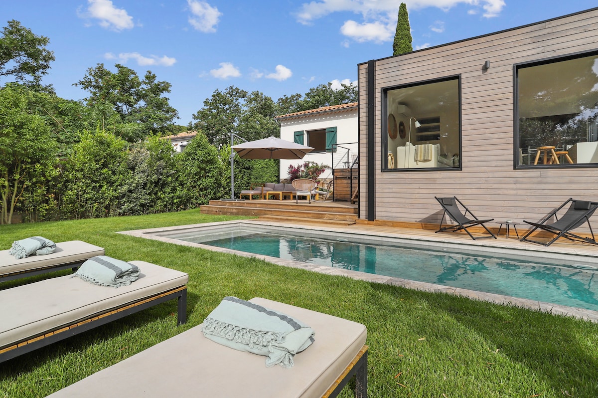 Petit STUDIO très bien équipée avec entrée et parking privé dans une grande Propriété avec piscine et jacuzzi chauffés du 10 avril au 30 octobre . La piscine extérieur et jacuzzi ainsi que le jardin sont partagés mais assez grand pour profiter chacun son espace de tranquillité . Je vis dans la bastide principale . Un Havre de Paix entouré d oliviers centenaires . A 35 minutes de l aéroport de Nice et divers villages provençaux et 14km de Cannes . Tele grand écran /abonnement Netflix