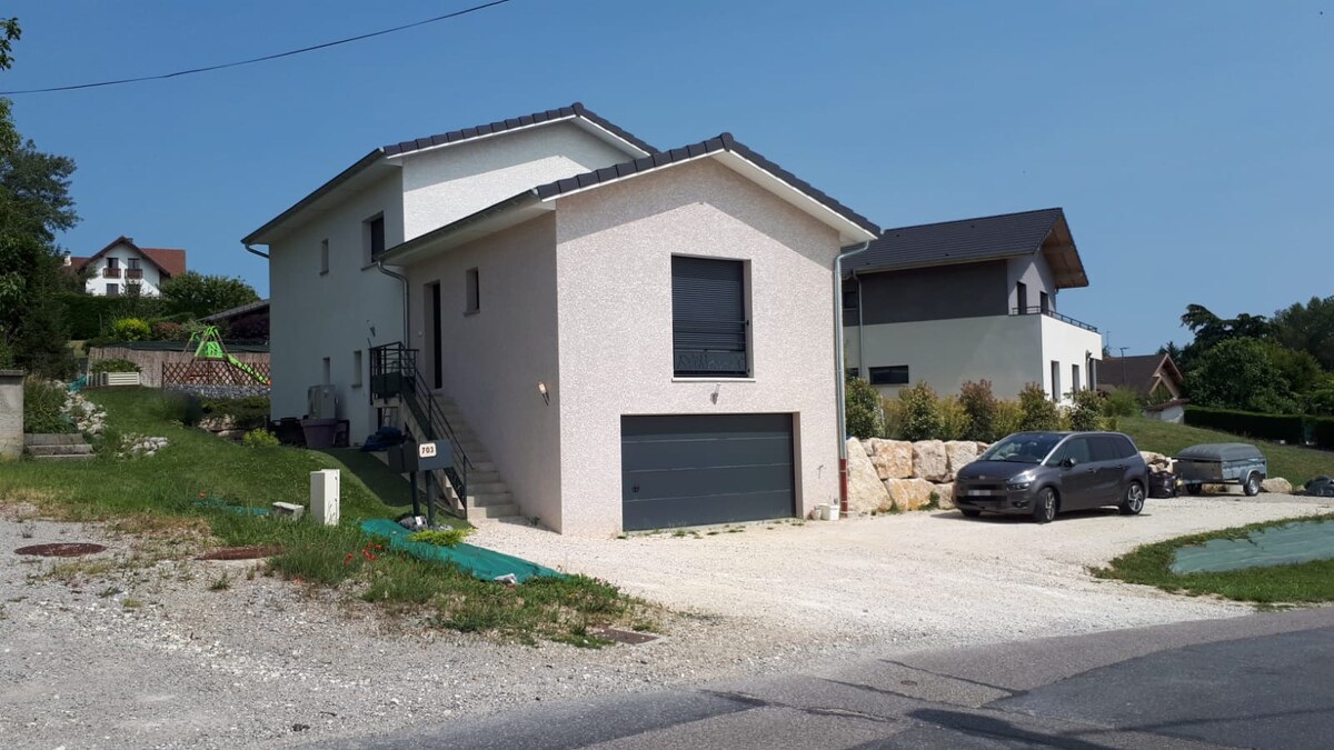 안시, 제네바 또는 벨가르드/발세린에서 20-30분 거리에 있는 아늑한 작은 마을에서 시골 생활을 즐기십시오. 상점과 대중교통(LIHSA 22번 노선)에 가깝습니다. 약 50m2의 2층 주택으로 다음과 같은 시물을 갖추고 있습니다. 1층: 거실/주방, 테라스, 샤워실, 별도의 화장실. 2층: 침실 2개(140cm 더블 침대) 및 화장실. <!>가능하면 동물을 혼자 두지 않고 동반하시면 됩니다(낯선 장소). 스키 리조트는 최대 50분 거리에 있습니다.