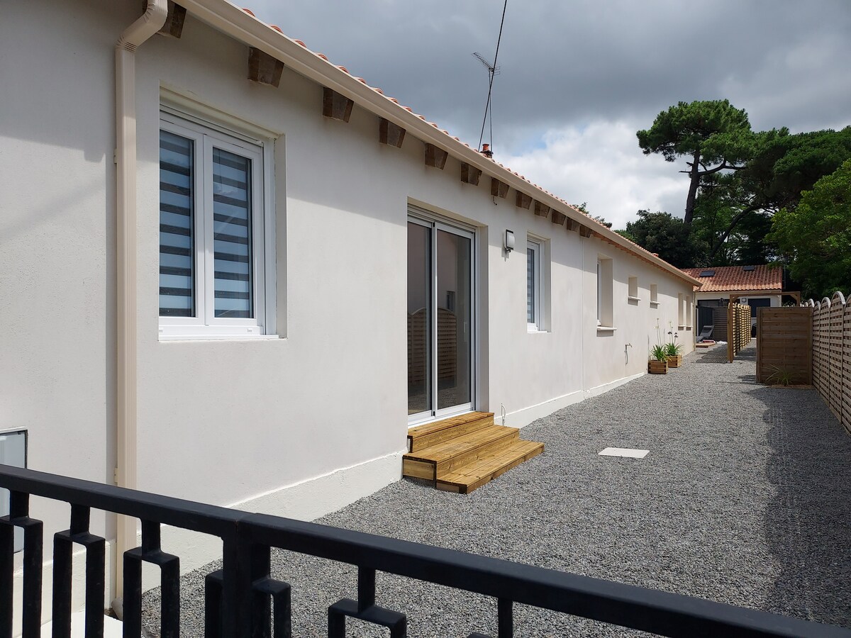 바다에서 200m 떨어진 이 조용하고 우아한 숙소에서 휴식을 취하십시오. 60m² 규모의 주택으로 남향 테라스가 있고 서향 테라스에서 일몰을 즐길 수 있습니다. 450m²의 완전히 울타리로 둘러싸인 조경 정원, 교통량이 적은 거리, 페탕크 코트, 편의 시설에 가까움 모든 시설이 완비된 넓은 주방에서 작은 지붕이 있는 테라스로 바로 나갈 수 있습니다. 전동 게이트가 있는 안전한 주차장.