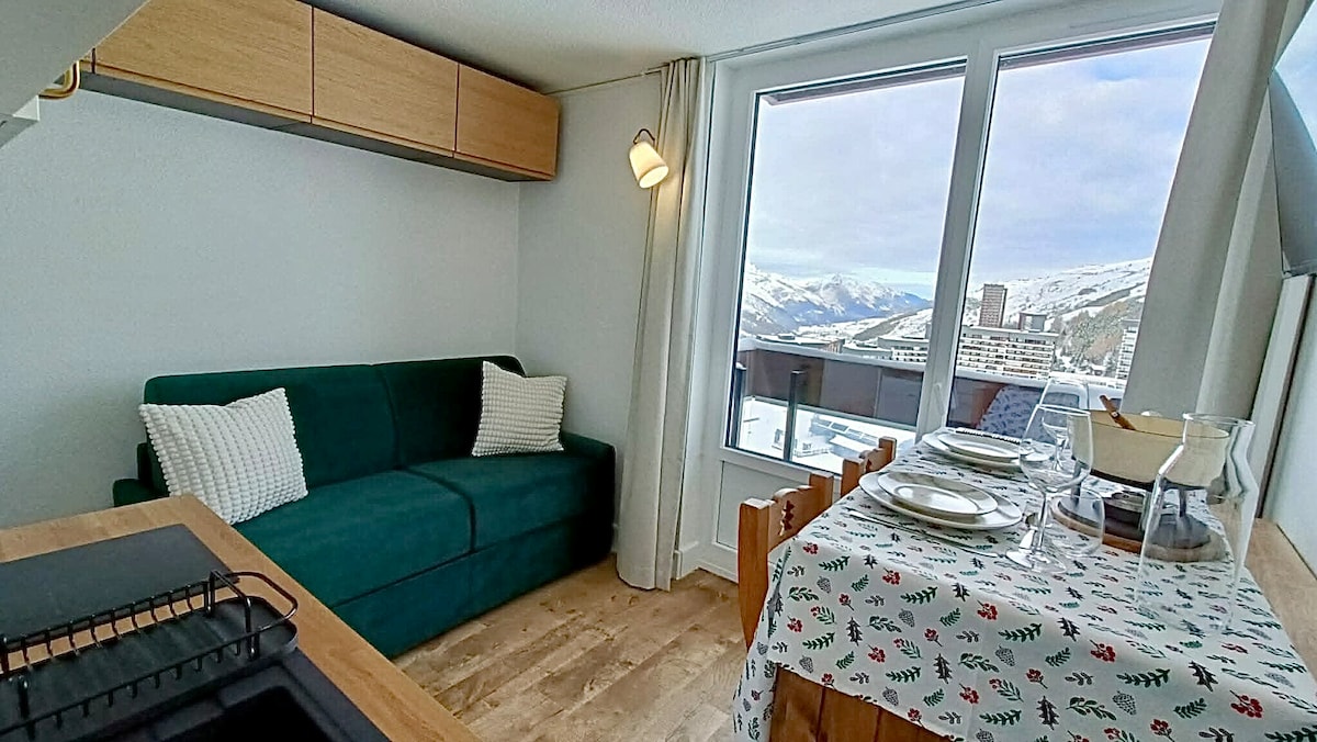 Studio rénové au cœur de la station des Menuires, avec vue imprenable sur La Croisette. 🏔️ Profitez de votre séjour avec une vue directe sur les pistes et le cœur de la station. Accès immédiat aux pistes et remontées mécaniques depuis le local à ski situé au RDC ou en bas de la résidence ⛷️ Toutes activités et commodités sont à proximité immédiate. Le logement a une capacité d'accueil de 2personnes. Des places de parking 🅿️ gratuites sont disponibles sur le bord de la route.