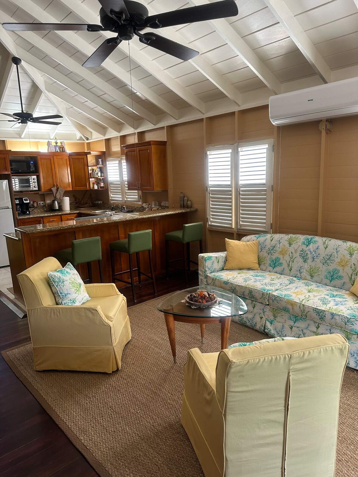 As you drive up to your quaint and peaceful cabin ,the stillness and calm welcomes you. This 2 Bedroom and 1 Bathroom cabin offers you a break from the every day stresses of life . A small but functional kitchen for those who like to eat at home , Free Wi-Fi for watching Netflix or surfing the internet . Known as the petite Vacation Home by everyone, The Yellow Cabin offers the perfect backdrop for fun and relaxation with a beautiful view of the island's mountain, Nevis Peak.