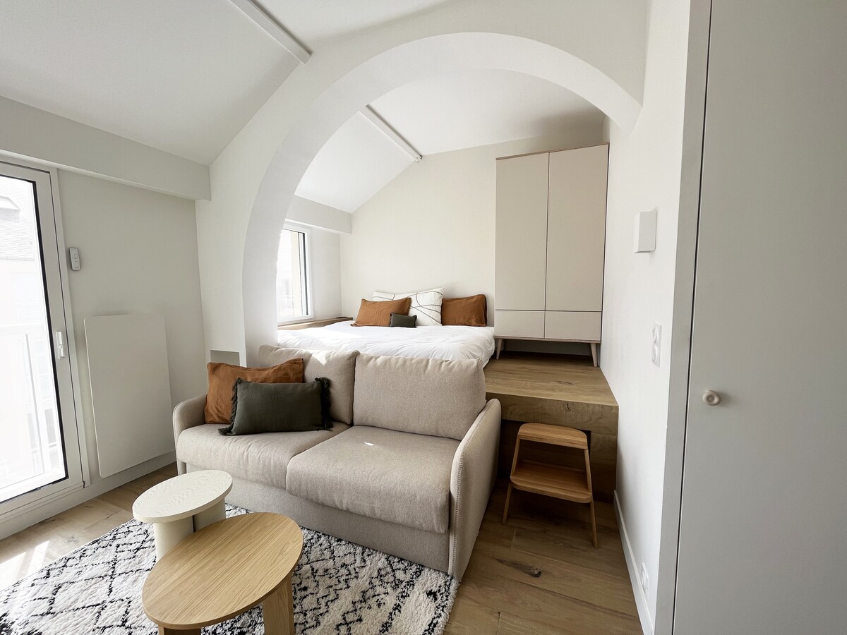 Les Sables에 오신 것을 환영합니다! 제방 중심부에 위치한 고급 레지던스 7층에 위치한 32 ㎡ 의 멋진 스튜디오입니다. 바다를 마주하고 있으며, 베이와 운하의 입구 전체 오른편에 멋진 전망을 자랑합니다. 조금만 걸어가면 해변과 제방이 나옵니다! 편의를 위해 6월/7월/8월 여름 시즌에 무료 주차가 예약되어 있습니다. 숙소에서 도보로 10분 거리에 주차장이 있습니다. 모든 것이 최상의 상태로 여러분을 수용할 계획입니다. 그럼 곧 뵙겠습니다!
