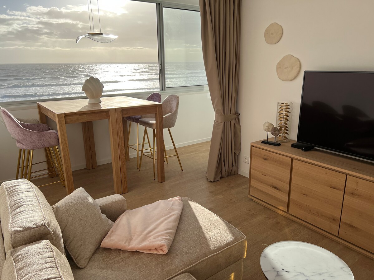 Bienvenue dans cet appartement situé sur la plage, avec vue mer panoramique, et aux couchers de soleil exceptionnels. Vous pourrez prendre vos repas comme si vous étiez sur la plage. Vous vous réveillerez avec une vue à couper le souffle. La décoration est élégante, soignée et moderne. Le confort est exceptionnel. Il est spacieux, très pratique et très bien équipé. On s'y sent super bien. Le checkin se fait de manière autonome, de jour comme de nuit 24h/24, 7 jours/7.