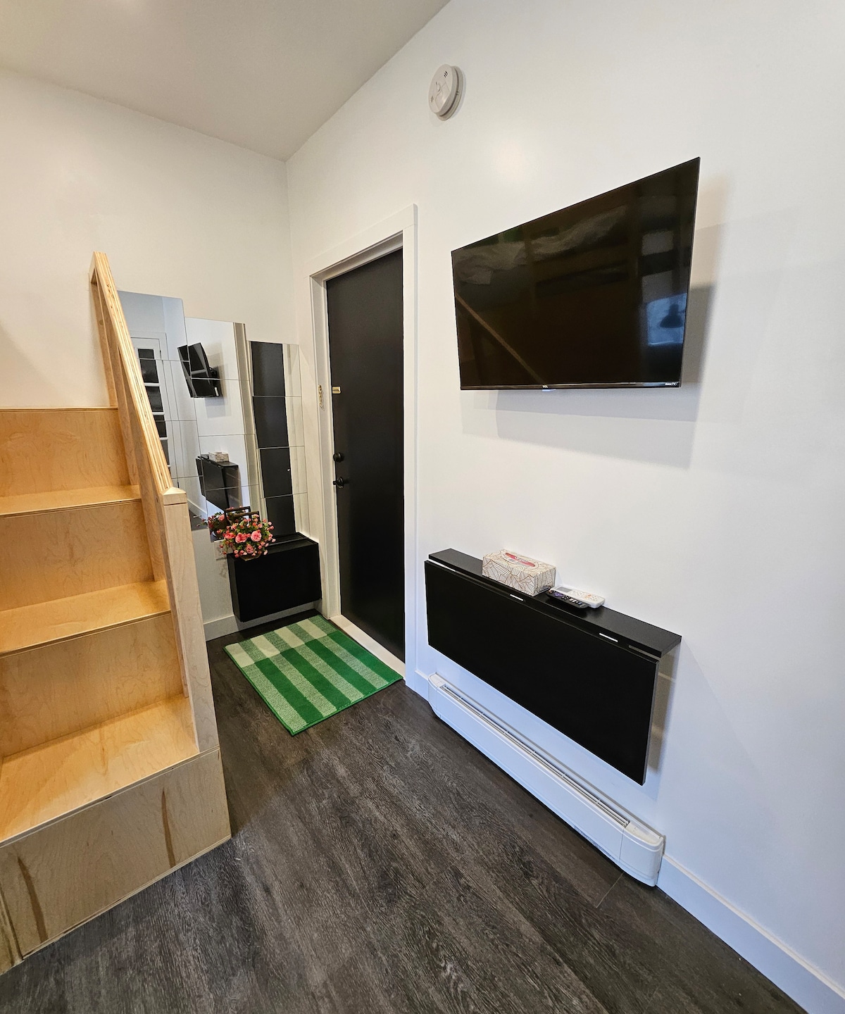 Chic Plateau-Mont-Royal Studio | Super Clean & Thoughtfully Designed Picture a compact, immaculately kept studio in the heart of Plateau-Mont-Royal. Pristine white walls create a bright, open canvas, while clever storage keeps the space organized and functional. Thoughtful design touches add warmth and personality, making this studio a stylish, serene retreat amid the city’s energy. Perfect for solo travellers or couples seeking comfort and convenience.