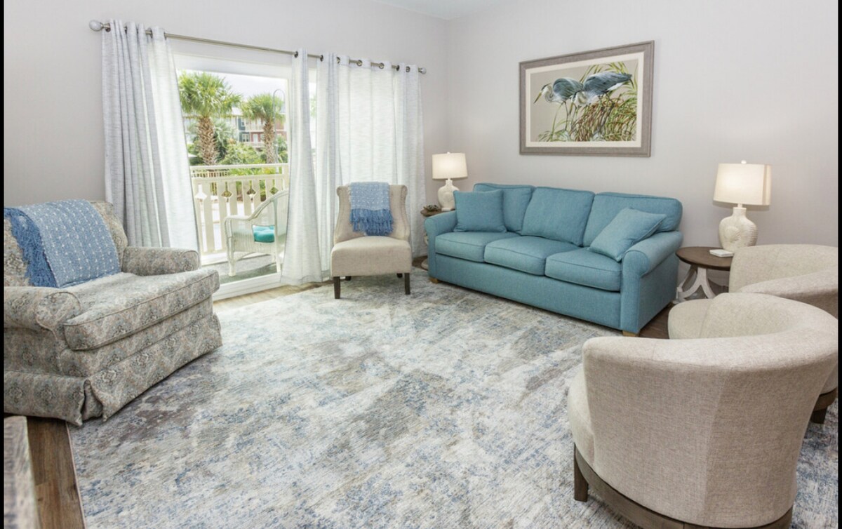 -무료 4인승 LSV 골프 카트(색상 및 제조업체 다를 수 있음) - 해변까지 도보 5분 - 커뮤니티 수영장 및 온수 욕조 - 주방 시설 완비 - 반려견 동반 가능(요금 부과), 고양이 동반 불가. - 킹사이즈 및 퀸사이즈 침대에서 최대 성인 4명까지 숙박 가능 - 어린이 2인용 이층 침대 공간 - 비치 타월 및 장비 - 숙소 주변의 운하 전망 및 도보 부두 - 아디론닥 의자와 테이블이 있는 발코니 - 스마트 TV 3대, 소노스 사운드 바 스피커 1대.