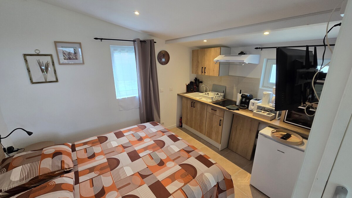 따뜻한 정원에 있는 아늑한 스튜디오. 모든 편의시설(침대 160개)이 갖춰져 있으며, 쾌적한 숙박을 즐길 수 있는 친근한 분위기를 제공합니다. 몽생미셸에서 10km, A 84에서 5km, 32번 출구. 세인트 제임스 미국 묘지 근처에 있습니다. 열쇠 보관함으로 셀프 체크인, 체크인 오후 4시부터 오후 9시까지, 체크아웃 오전 10시, 무료 전용 주차장.