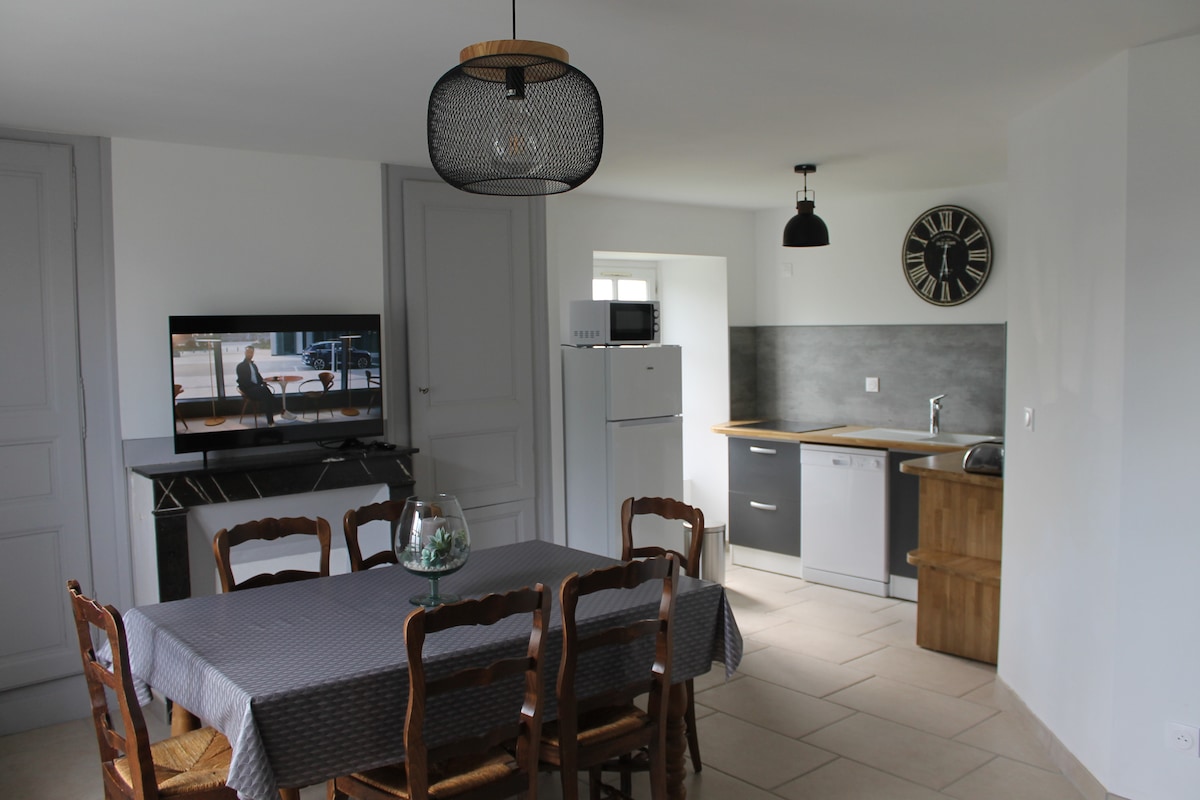 7000m2 부지에 위치한 메종넷, 전원 지역과 마을(도보 10분)의 멋진 전망을 자랑하며, 망에서 20km 거리에 있습니다. 주방이 있는 거실, 2인용 컨버터블 벤치가 있는 라운지 코너, 라운지 테이블 및 TV가 있습니다. 160cm 2인용 침대 1개, 드레싱룸 및 서랍 2개가 있는 침실. 이탈리아식 샤워실, 더블 세면대, 변기 및 세탁기가 있는 욕실.