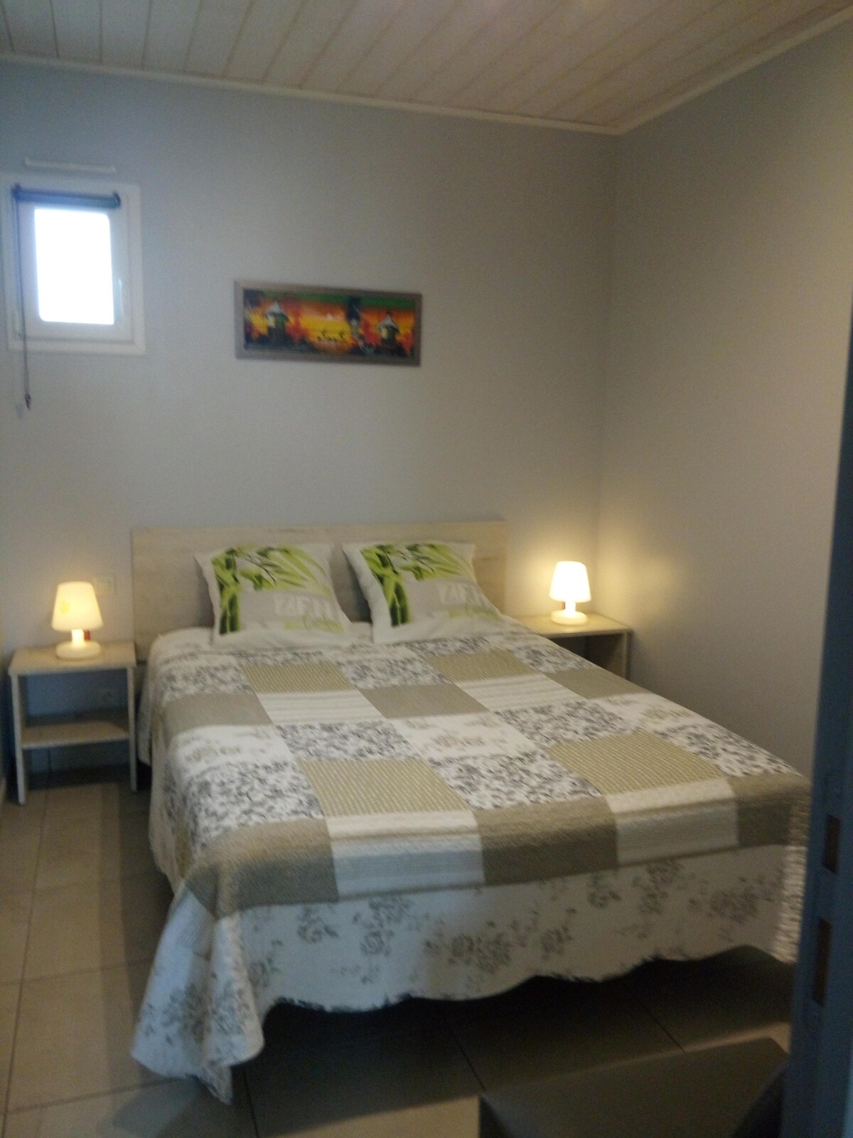 Réduction 30% la semaine de (décembre /Avril) Logement neuf, lumineux de 32 m2 composé d'une pièce de vie avec cuisine aménagée toute équipée, plaque induction, réfrigérateur, micro-onde , un écran plat, un canapé lit servant de second couchage. Vous avez également à votre disposition ,une cafetière électrique ,une bouilloire et un grille pain, torchons. Une chambre avec placard et lit de 140/190. Une salle de bain avec WC, meuble sous vasque, douche avec jet hydro-massant. Ménage inclus.