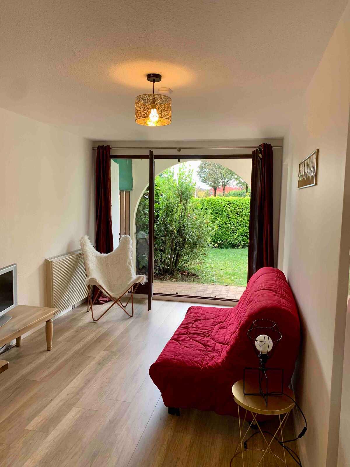 Appartement T2 refait, avec un séjour et une cuisine équipée donnant sur une terrasse, une grande chambre. Au calme et proche de toutes commodités. La chambre est spacieuse, des placards équipés. Les toilettes et la douche se trouvent dans la chambre.