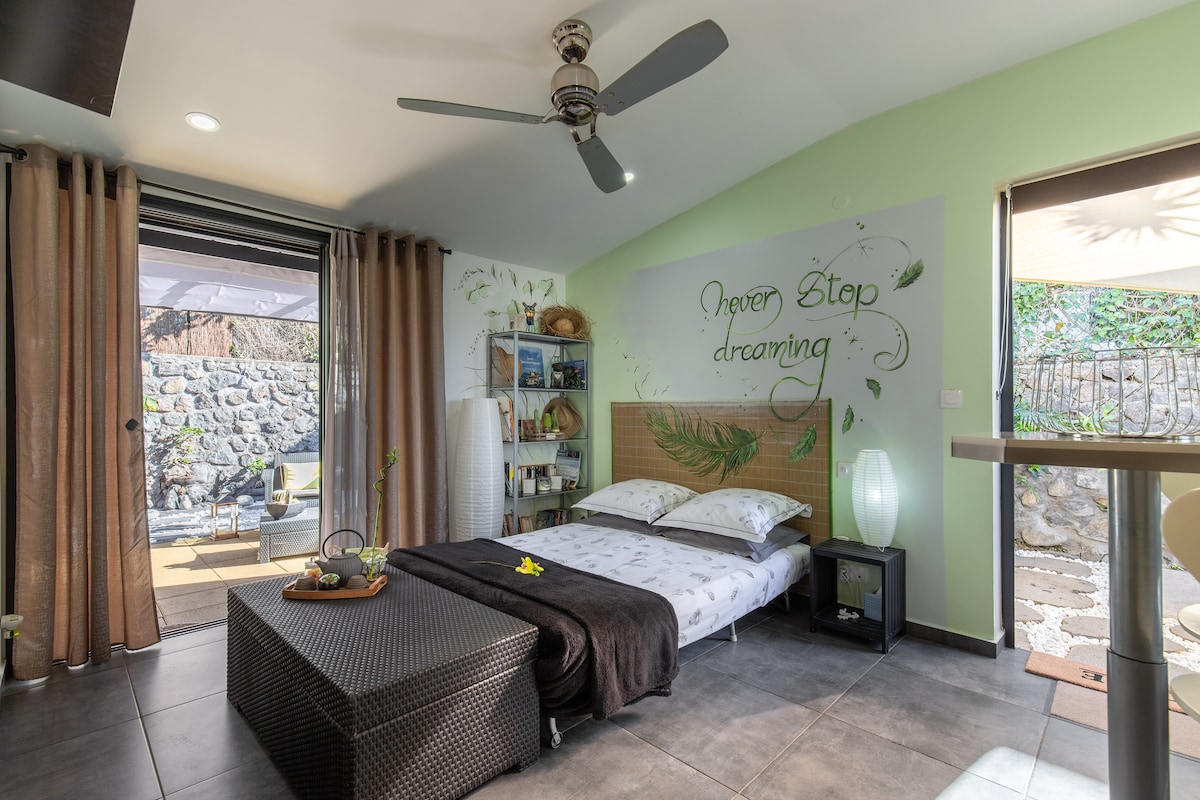 Come and enjoy this spacious and beautiful room. Totally independant (with private bathroom) in a very well placed family house. A quiet ant nature spot only some minutes away from Saint Pierre, the beach, and main roads for your visits. A handy kitchen in the back yard and direct access to our natural stone pool with massage jets to cool off and relax.
