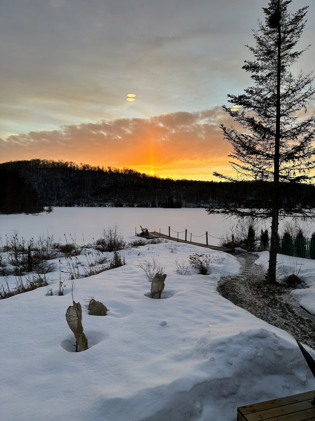 Situé dans une petite érablière, à quelques minutes de marche du lac, le Solästä peut accueillir 4 visiteurs. Sentier menant à de magnifiques panoramas. Abondante fenestration. Endroit idéal pour se ressourcer en nature, seul/en amoureux/en famille. Animaux acceptés à certaines conditions (voir Afficher plus)*. 3e nuit à moitié prix / rabais 20 % pour 1 sem (voir Afficher plus)**. 2 nuits min. / 7 nuits min. semaines construction + fêtes + relâche. Visite virtuelle : écrivez-nous.