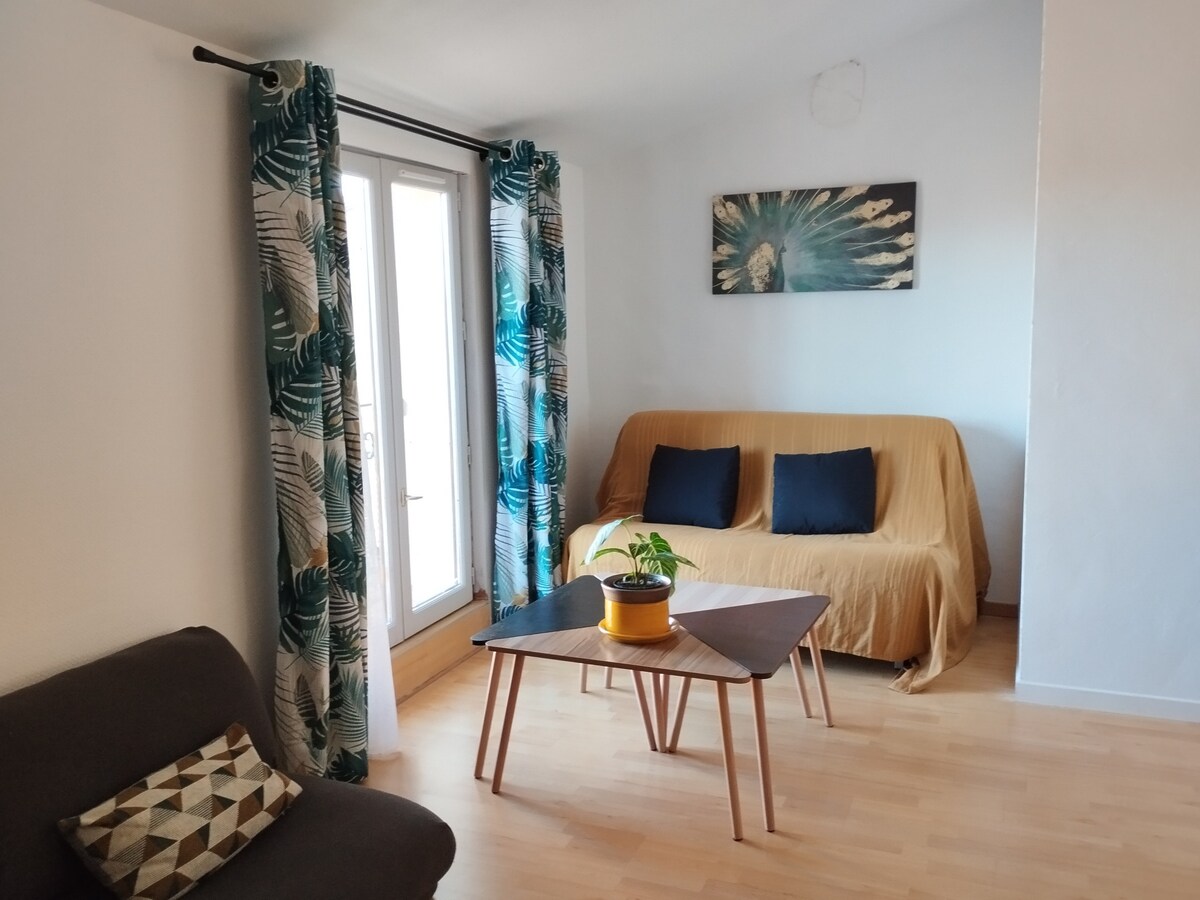 몽블랑 자치구의 전형적인 포도 재배자의 집 2층과 최상층에 위치한 쾌적한 게스트 아파트 Le Petit d'Aquí에 오신 것을 환영합니다. 1층에 외관도 마련되어 있습니다. A9와 A75 사이에 이상적으로 위치하고 있으며, 베지에/페제나/카프다그 삼각지대에 있습니다. 바다, 미디 운하에서 차로 20분, 몽펠리에/세트/살라구 호수에서 30~40분 거리 인근 상점, 도보 5분 시트, 수건 제공 - 웰컴 커피/차 포드