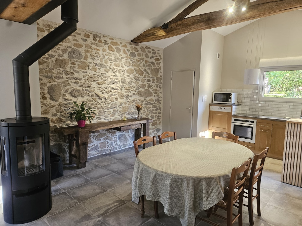 자연 한가운데서 편안함과 평온함을 느낄 수 있습니다. 27m2의 넓은 스튜디오에서 시골에 위치한 새로운 주택과 인접한 숙소에서 여러분을 맞이하게 되어 기쁩니다. 편안한 소파가 있는 거실과 주방으로 구성되어 있으며, 침실 공간과 TV, 욕실을 이용하실 수 있습니다. 2025년 신규: - 슬라이딩 도어 1개(침실) - 새 의자 4개 - 1 매트리스 NINE 서포트 페르메 ep. 23cm, 2025년 4월 22일부터.