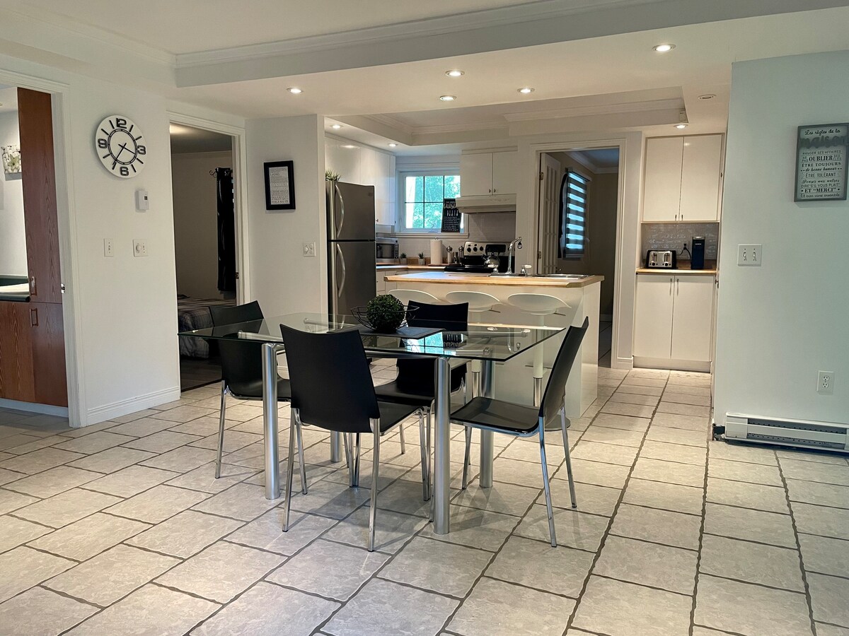 사람이 많이 지나가지 않는 거리에 위치한 이 평화롭고 넓은 숙소에서 모든 걱정을 잊어버리세요. 자연의 중심에 위치한 매혹적이고 평화로운 세상입니다. 젊은 가족에게 적합합니다. 다리에서 15분 거리에 위치하고 있으며 모든 서비스(어린이 공원, 축구장/야구장, 편의점, 식료품점, SAQ)와 가까우며, 작은 레스토랑(Le Coin du Passant)과 클럽 아라미스가 숙소에서 5분 거리에 있습니다. 멋진 숙박을 위해 여러분을 맞이하게 되어 기쁩니다.