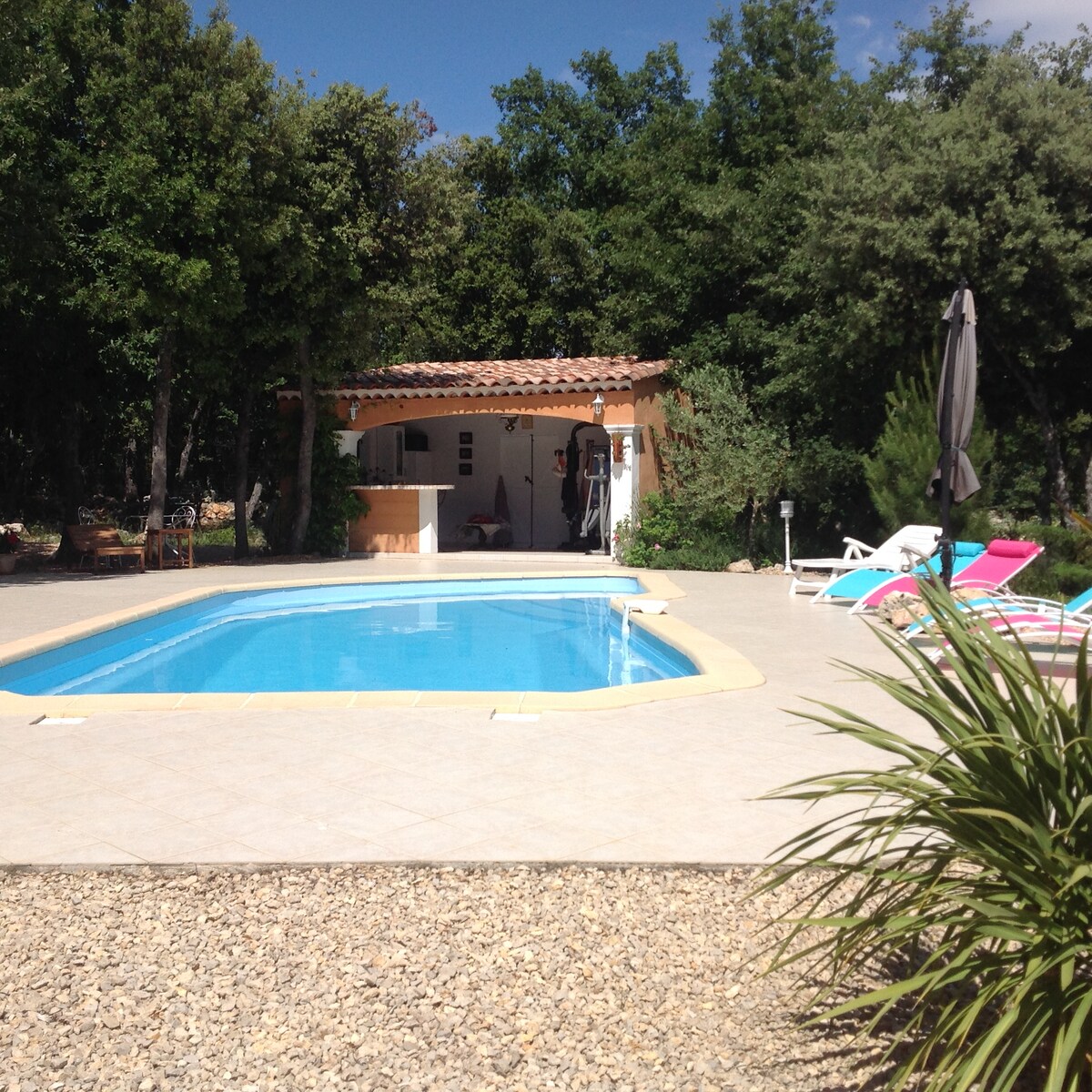 Charmante dépendance attenante à notre villa, située dans un quartier résidentiel familial, idéale pour une escapade en Provence. Pour votre confort et votre intimité, vous bénéficierez d’un accès entièrement indépendant de notre maison. Profitez pleinement de votre piscine et de votre jardin privés, ainsi que de plusieurs espaces de détente pour lire, bronzer ou savourer un apéritif en toute tranquillité. Une terrasse ombragée vous accueillera pour des repas agréables à l’extérieur !