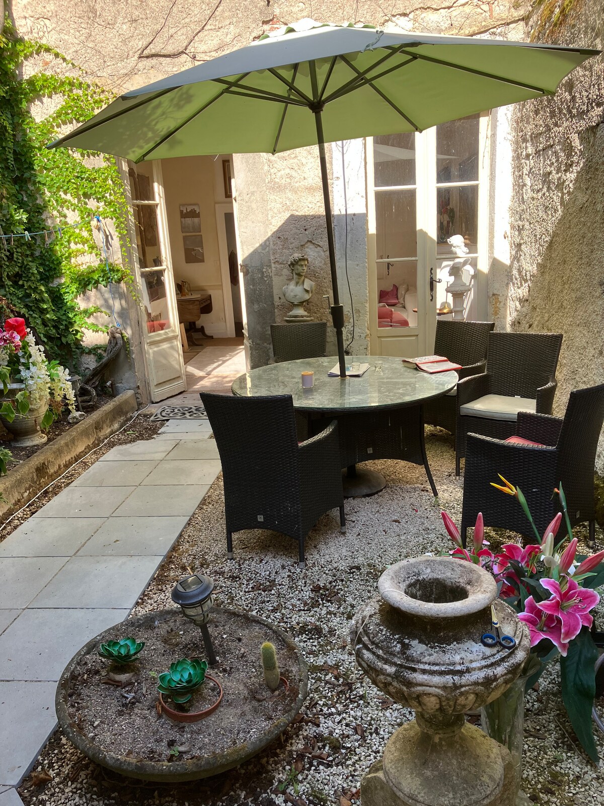 votre séjour à BERGERAC dans un cadre de vie confortable une fois la voiture garée dans son garage individuel(pas de parcmètre) tout pourra se faire à pied car entouré des petits commerçants et des restaurants, le marché paysan (mercredi et samedi matin ) se trouve à 20m. Au retour de vos escapades en Périgord vous apprécierez la climatisation générale et sa terrasse ombragée il est conçu pour 1 à 4 personnes car équipé de 2 salles de bains vous bénéficiez de l'ascenseur si besoin